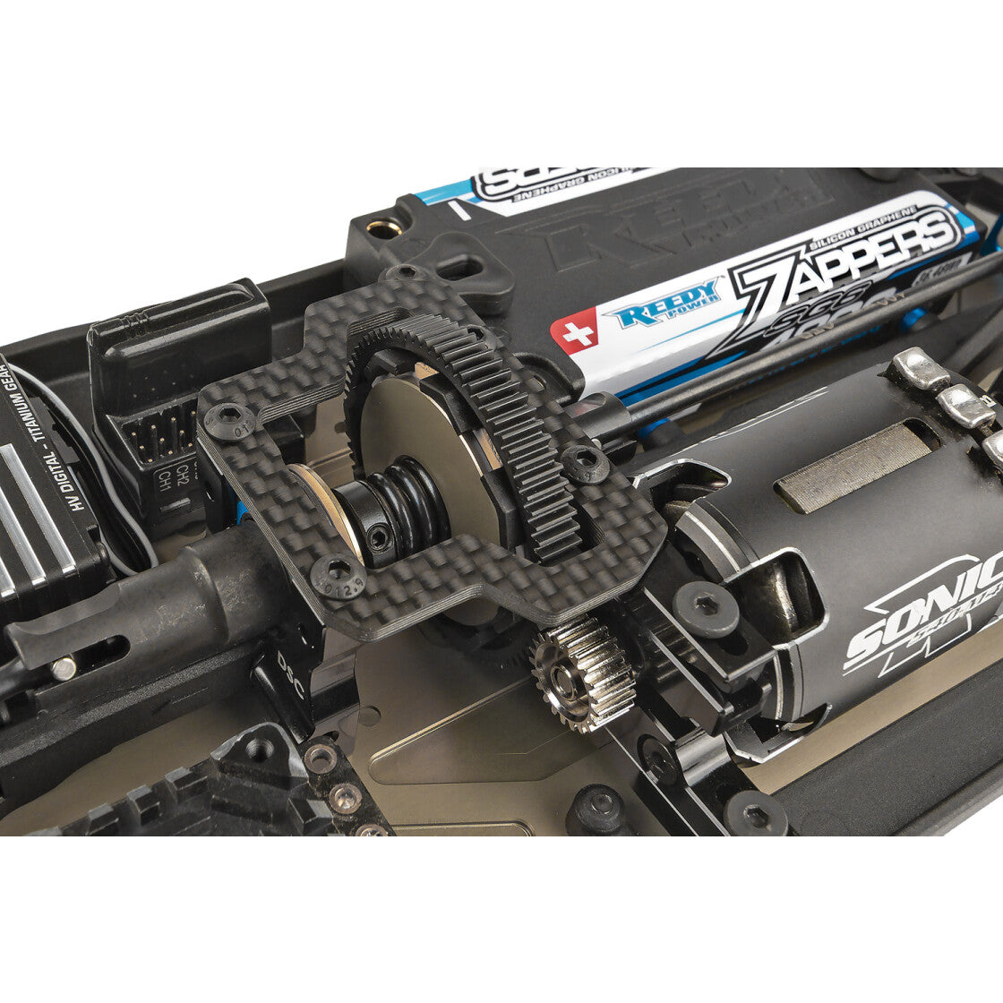 Diese mit modernsten Funktionen ausgestattete Wettbewerbsmaschine bietet überlegenes Handling und Kontrolle. Seine aus Kunststoff geformten, höhenverstellbaren Getriebe halten das Gewicht niedrig und bieten eine breite Palette an Einstellmöglichkeiten.